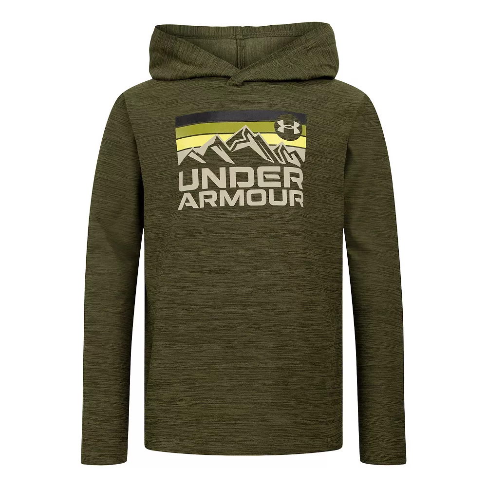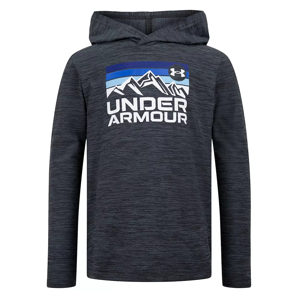 Sporty fashion is easy with this boys’ Under Armour hooded tee.