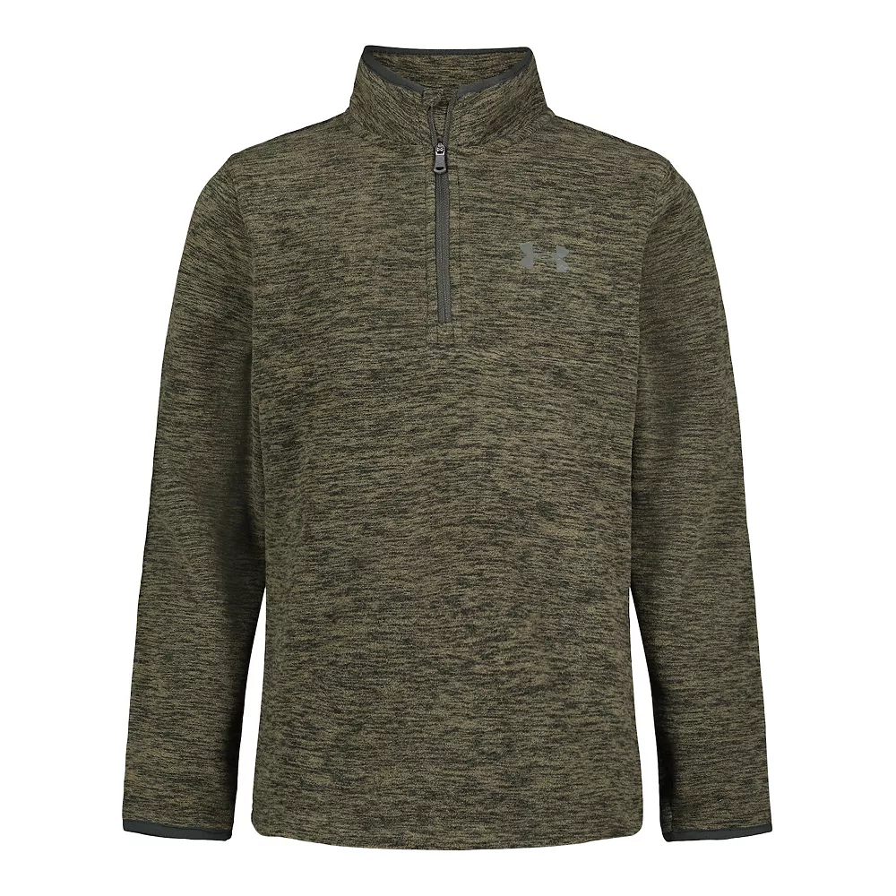 He’ll be comfy and cozy in this classic fleece quarter-zip boys’ pullover from Under Armour.