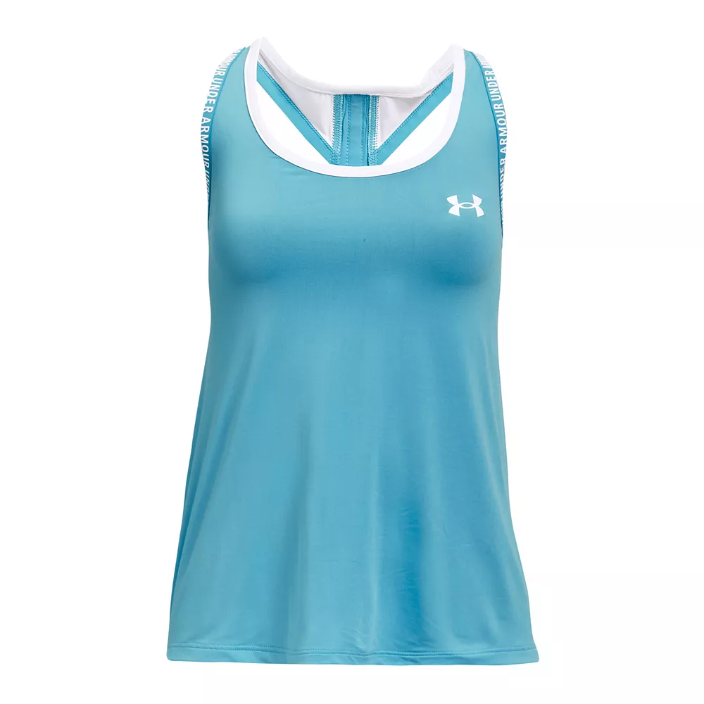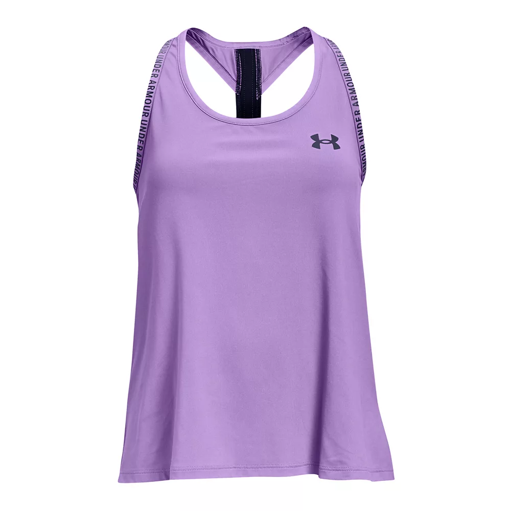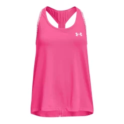 She’ll conquer any activity in supreme comfort and style when she gears up with this girls’ tank top from Under Armour.